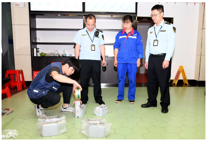 来宾市市场监管局执法人员在对抽样送检的成品油进行封样送检。